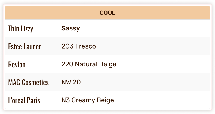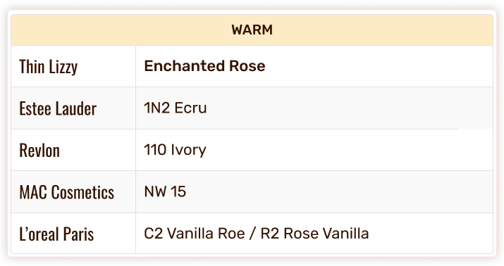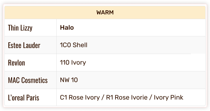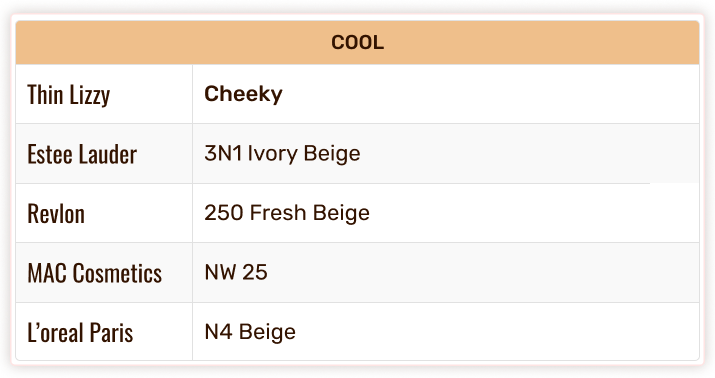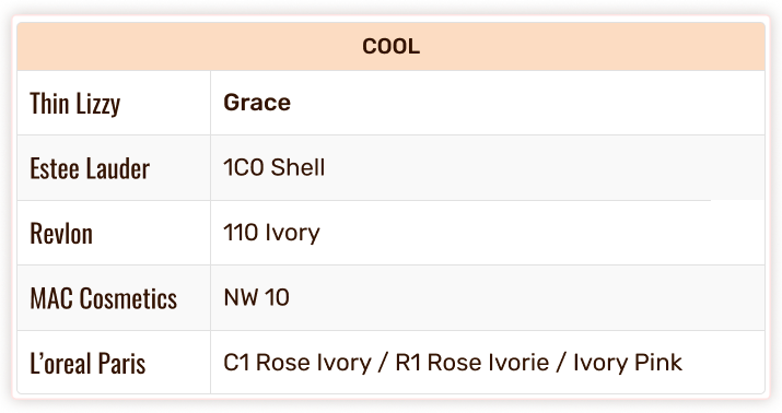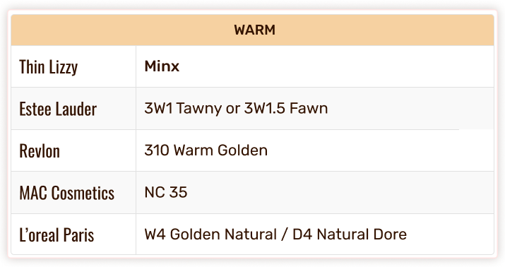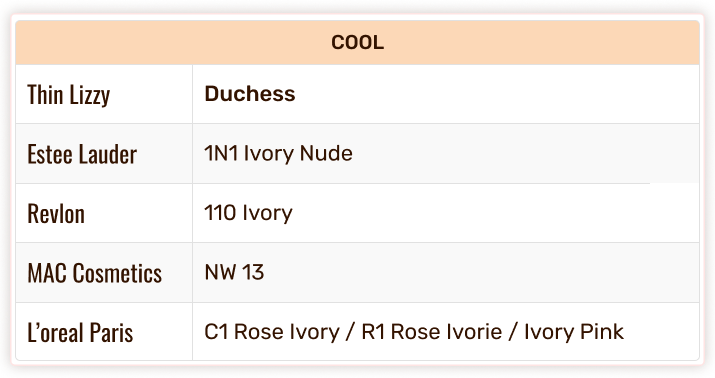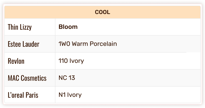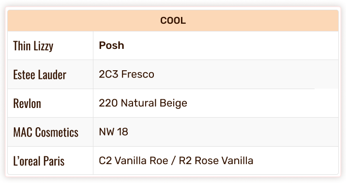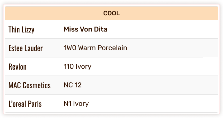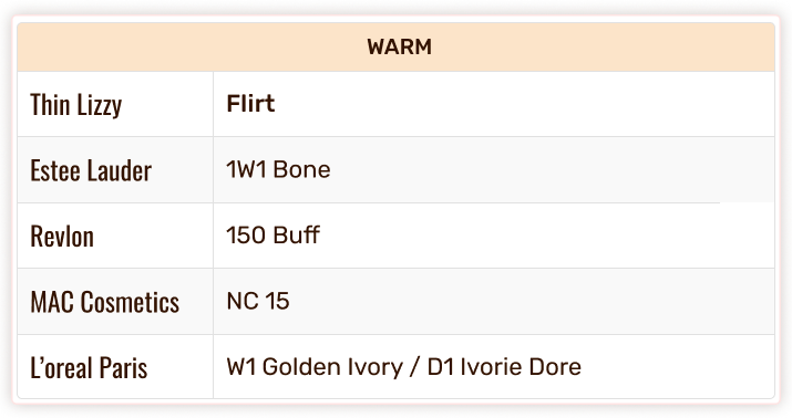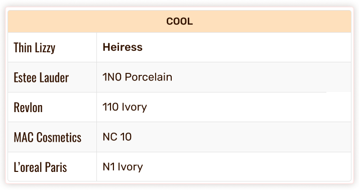 Thin Lizzy Colour Chart - Foundation & Concealer Shade Match